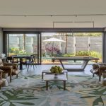 A madeira, inclusive, é a responsável pelo suave toque de brasilidade do projeto, que ainda recebeu a icônica poltrona Mole e seu descanso para pés do mestre do design nacional Sérgio Rodrigues.